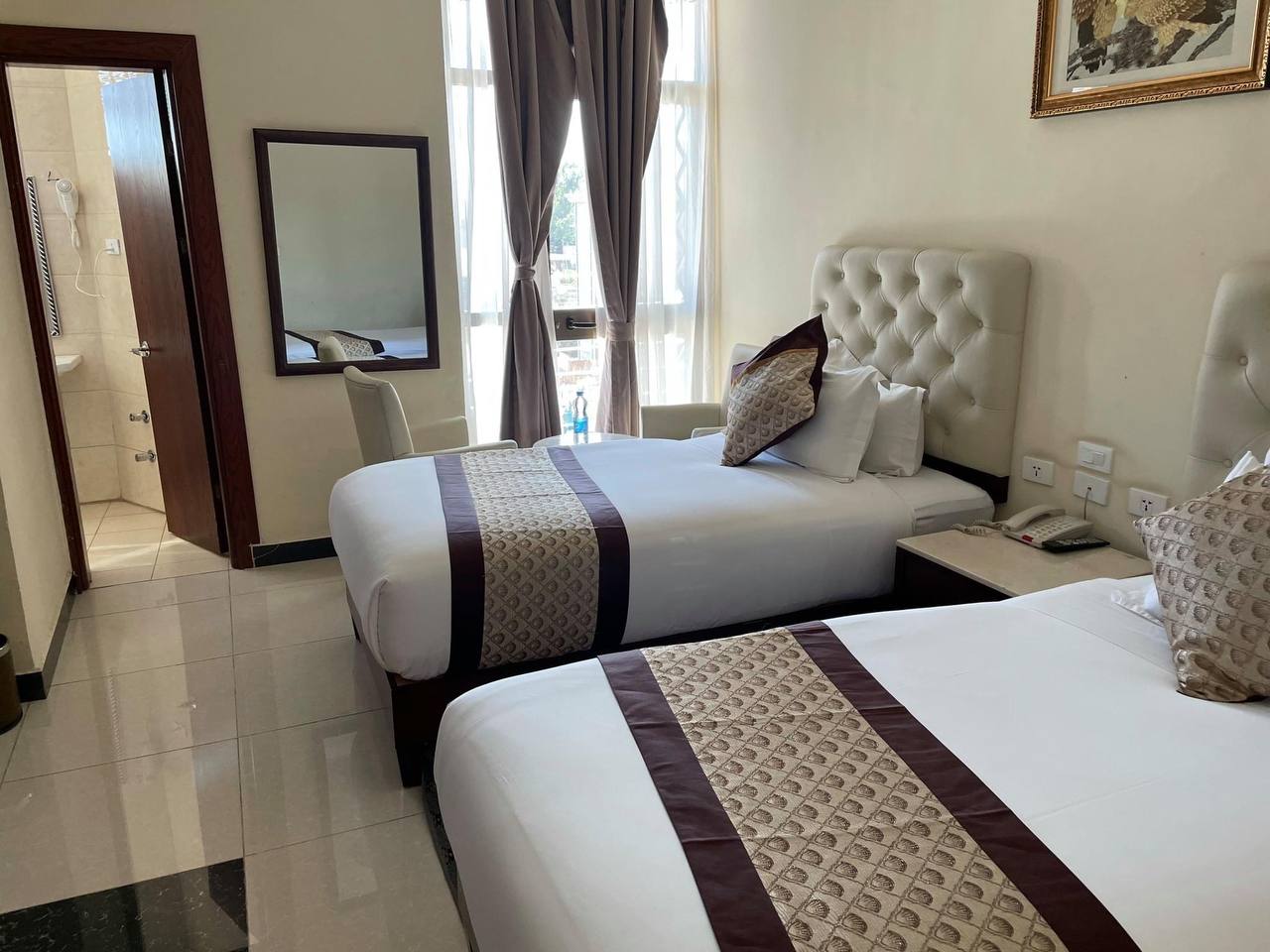 Spacious suite for families, with a sitting area and views of the Gondar skyline.